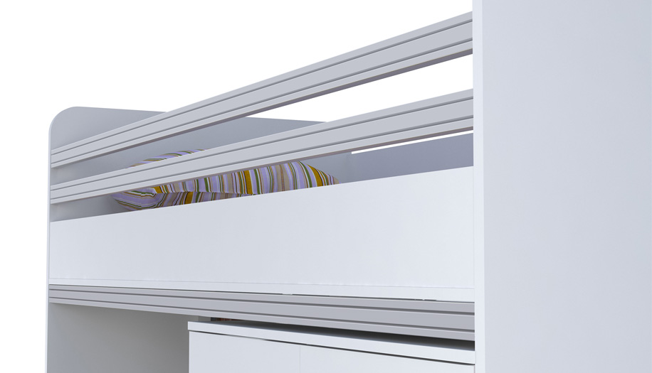 Мебель выполнена из натуральных и безопасных материалов: ЛДСП Kronospan (Австрия), бортики кровати- легкий алюминиевый профиль серого цвета.