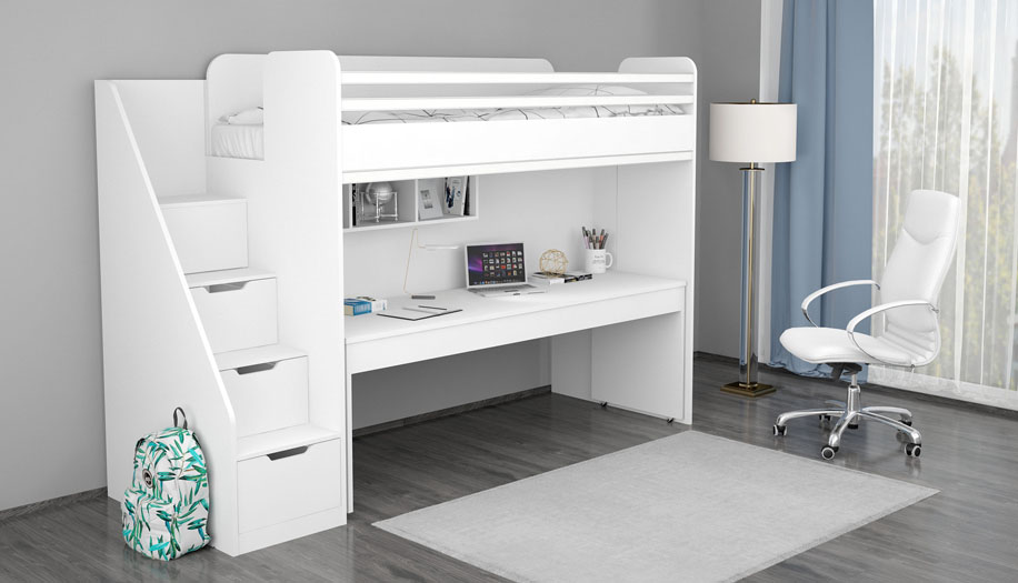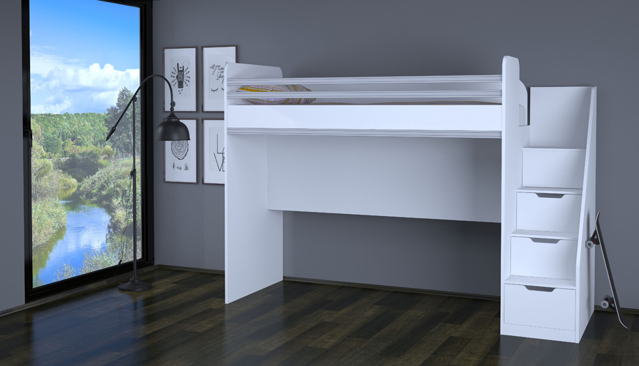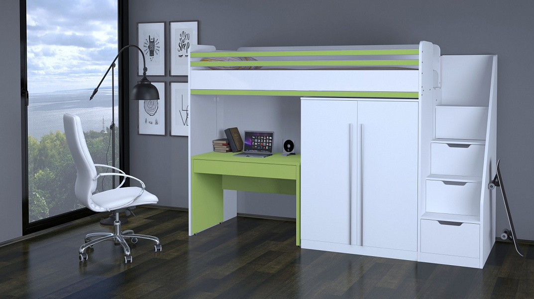 Классическая кровать-чердак позволит сэкономить место в детской комнате, освобождая пространство для активных игр и обучения ребенка.