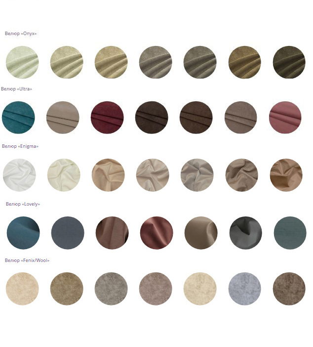 Удивительно мягкая и приятная на ощупь коллекция, которая дорого выглядит и очень практична в использовании: устойчив к замятию, легко чистится и невосприимчив к шерсти домашних животных. Это благородный велюр высокого качества по доступным ценам.